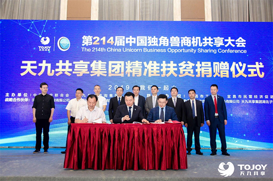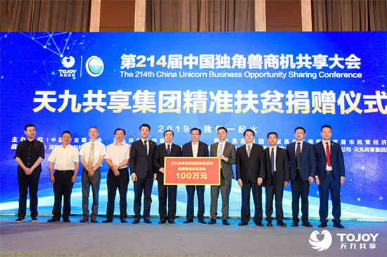 2019年6月14日,第214屆中國獨角獸商機共享大會暨天九共享集團精準扶貧捐贈儀式在湖北宜昌隆重舉行。近600位工商聯(lián)領導、商協(xié)會領導以及企業(yè)家到場參會,共同探討在新經濟環(huán)境下如何助力企業(yè)家智慧轉型,推動民營經濟向高質量發(fā)展。