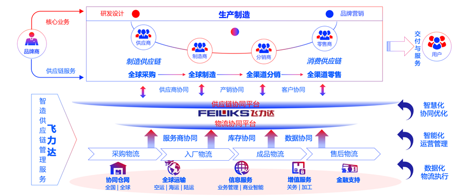 以飛力達(dá)為例,飛力達(dá)通過整合資源、創(chuàng)新服務(wù),圍繞制造產(chǎn)業(yè)的核心客戶,積極搭建了“供應(yīng)鏈協(xié)同”、“ 物流協(xié)同”兩大平臺(tái),打通從上游Inbound到下游Outbound的整條供應(yīng)鏈服務(wù),打造出集“采購(gòu)物流、入場(chǎng)物流、成品物流、售后物流”為一體的供應(yīng)鏈物流體系。通過連接品牌商、制造商、供應(yīng)商三方,導(dǎo)入先進(jìn)的智能物流技術(shù),推動(dòng)供應(yīng)鏈物流服務(wù)向智能化、協(xié)同化、平臺(tái)化方向發(fā)展,為客戶提供端到端的供應(yīng)鏈解決方案。據(jù)姚勤透露,目前飛力達(dá)正在同一客戶構(gòu)建協(xié)同機(jī)制,飛力達(dá)自動(dòng)化立體庫(kù)與對(duì)方產(chǎn)線可以做到智能一體化協(xié)同,預(yù)計(jì)今年底可看到成果。