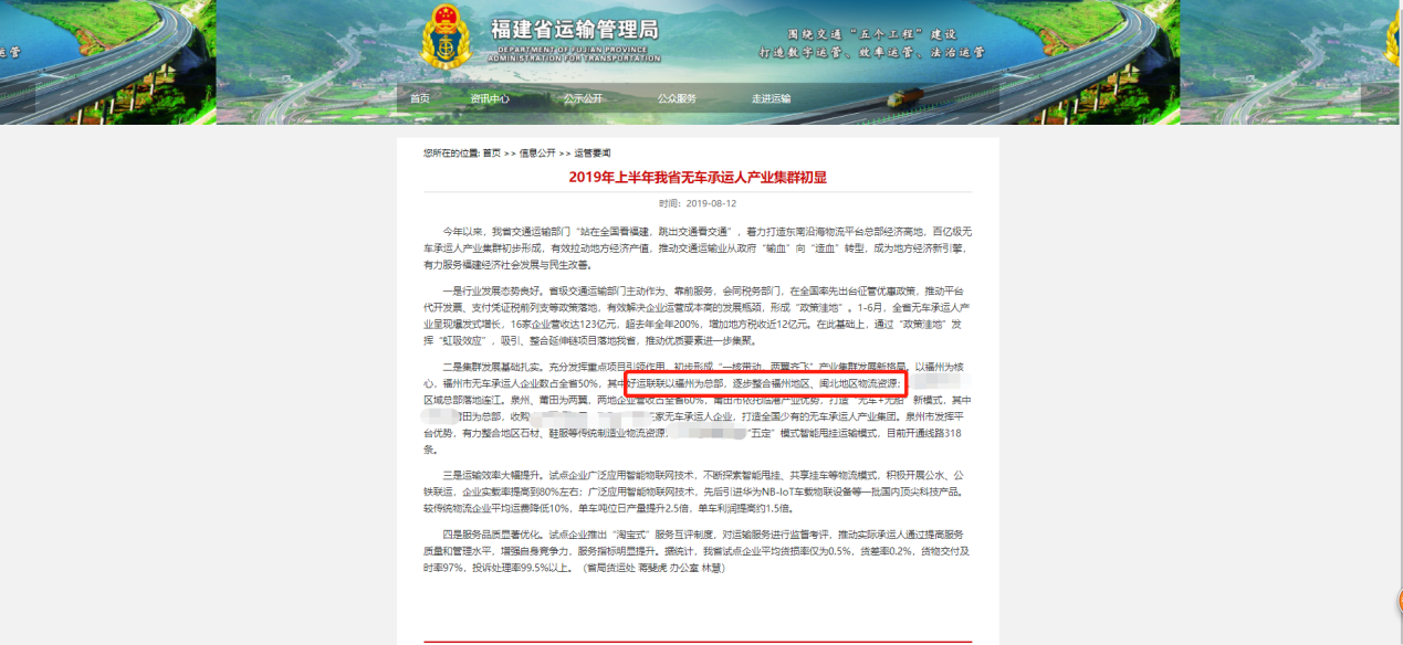 (福建省運輸管理局官方網站2019年8月12日新聞報道)