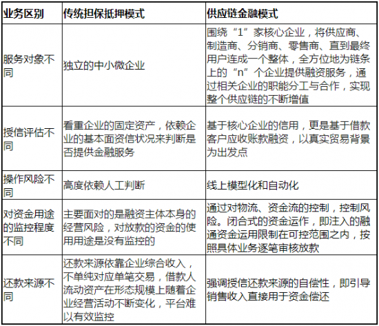 中投摩根成功完成業務轉型后,在服務對象、操作風險多方面均有明顯改善與提升。以下為傳統融資擔保抵押與供應鏈金融二者的業務區別: