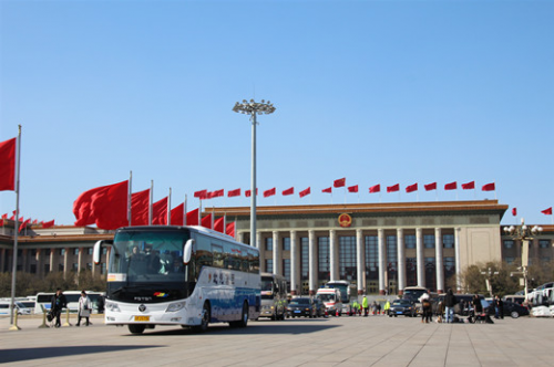 2019全國兩會期間,歐輝新能源客車首次批量出現在全國兩會護航保障車隊中,實現了新能源客車服務全國兩會的“零”突破。