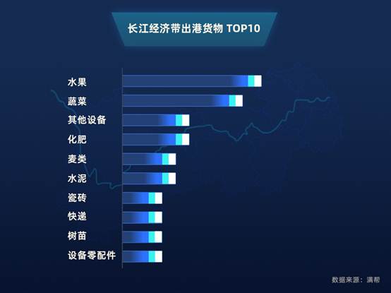 滿幫大數(shù)據(jù)顯示,在長(zhǎng)江經(jīng)濟(jì)帶出港貨物中,水果等農(nóng)產(chǎn)品及化肥等農(nóng)資占到了運(yùn)輸總量的約30%。經(jīng)濟(jì)帶內(nèi)氣候優(yōu)良,水土條件優(yōu)渥,農(nóng)作物成熟快,盛產(chǎn)各類果蔬農(nóng)產(chǎn)品,蘇北更是中國(guó)五大蔬菜產(chǎn)地之一。