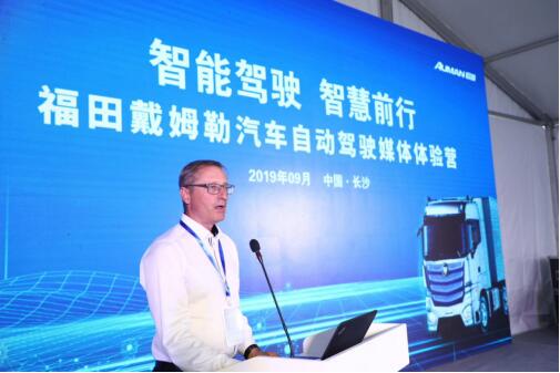 【福田戴姆勒汽車自動駕駛負責人 趙光輝就歐曼自動駕駛車輛進行現場講解】