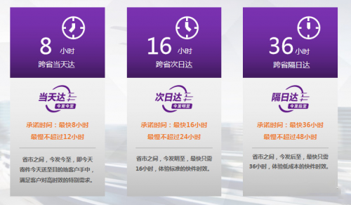 2017年,跨越基于其“珠三角-長三角”夜航包機的優勢,將國內跨省速運服務從“跨省8小時”提速到“跨省6小時”。