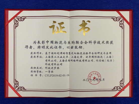 近日,由中國物流與采購聯合會主辦的“第十二屆現代物流科技創新大會暨2019年度中國物流與采購聯合會科學技術獎頒獎大會”在湖南省岳陽市召開。東方福利網憑借在基于循環利用智慧逆向物流實驗平臺方面的研發與應用,取得了大會專家評委會一致認可,榮膺“科技進步獎一等獎”。