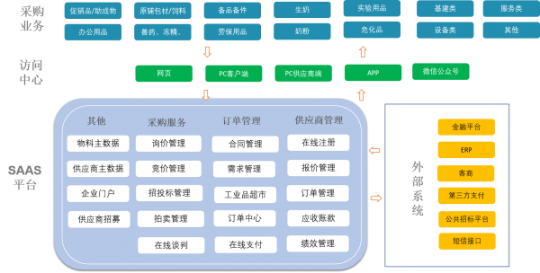 內部建設完成后可逐步實現對外開放,可對外部企業開放獨立門戶,外部企業能夠通過平臺管理自己的供應商,開展詢價、競價、招投標等采購工作,打造乳制品行業級采購平臺,構建良性的采購生態。