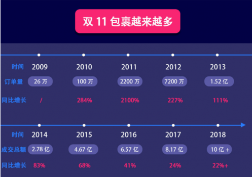 除了價格的狂歡,這些電商大促節(jié)日在短期內帶來了訂單與貨量的暴增,毫無疑問,這也是一場考驗物流效率和服務能力的戰(zhàn)役。以天貓雙11為例,2018年的包裹量高達13.4億,據(jù)國家統(tǒng)計局數(shù)據(jù)顯示,預計2019年雙十一期間產生的快遞包裹量有望突破22.5億件。從最初的幾何式井噴增長到如今的穩(wěn)定上升,電商領域對物流服務商在配送速度與服務質量上的高要求從未停止,隨時迎接大貨量成為了物流人的常態(tài),“分鐘級物流”已是電商物流發(fā)展大趨勢的關鍵詞之一。