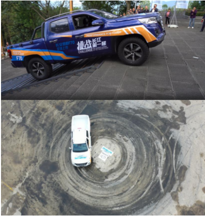 有人說,開皮卡爬1500米陡峭梯子已經令人匪夷所思,但是長安凱程F70并不滿足于這一項世界級榮譽,憑借著自身過硬的產品實力,長安凱程F70在無改裝的情況下玩定點漂移,并且最終以1分鐘內漂移14圈的成績,獲得上海大世界基尼斯紀錄認證。玩車的應該都知道,原地定點漂移有別于常規漂移,難度相當大,不僅對車手的技術有很高的要求,而且對車輛本身的底盤、懸掛、動力等等也有很高的要求。長安凱程F70能夠輕松完成挑戰,源于長安凱程F70優越的穩定性及操控性,特別是“PSA底盤大師”與長安美國底特律研發中心聯合調教的底盤系統,日本索密克提供的全底盤硬件,同時整車配備ESC穩定系統,特別是PSA在底盤方面的優勢,可謂是行業領先,編輯以前購買PSA的車完全就是因為PSA車的底盤好。