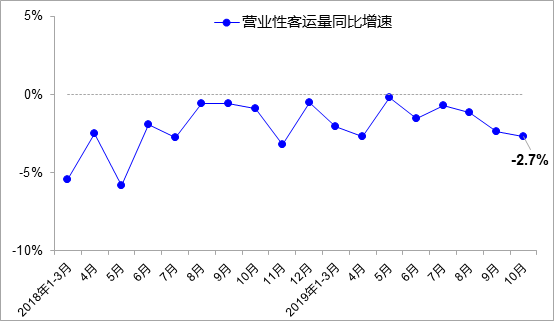 二是營業(yè)性客運(yùn)量延續(xù)小幅下降。