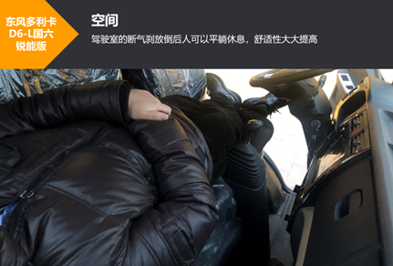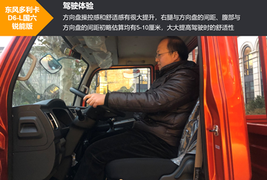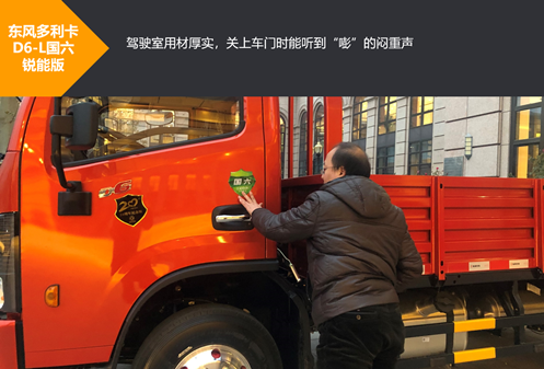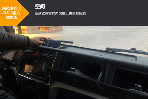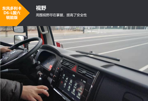 東風多利卡D6的座椅有所抬高,包覆性強,乘坐舒適;配備倒車影像,倒車省心;帶吸音棉的地毯和針孔式隔音墊,讓駕駛室內不漏風,NVH噪聲測試結果僅為68db,為駕駛員和隨行人員提供了一個安靜的環境。