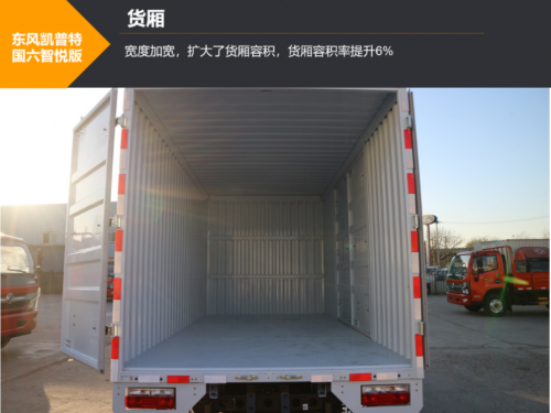 貨廂方面,新一代東風凱普特國六智悅版加寬了貨廂寬度,擴大了貨廂容積,貨廂容積率提升了6%。