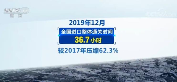 海關(guān)總署今天公布:2019年12月,全國進口整體通關(guān)時間36.7小時,較2017年壓縮62.3%;出口整體通關(guān)時間2.6小時,較2017年壓縮78.6%。