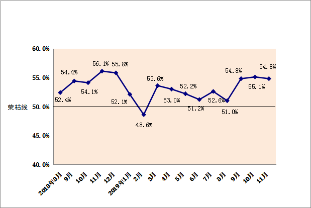 平均庫存量指數(shù)、庫存周轉(zhuǎn)次數(shù)指數(shù)雙降,企業(yè)保管環(huán)節(jié)延長。12月份,平均庫存量指數(shù)為51.9%,較上月回落1.1個百分點;庫存周轉(zhuǎn)次數(shù)指數(shù)為51.2%,較上月回落2.1個百分點。庫存周轉(zhuǎn)次數(shù)指數(shù)降幅大于平均庫存量指數(shù)降幅,反映出企業(yè)保管環(huán)節(jié)延長。