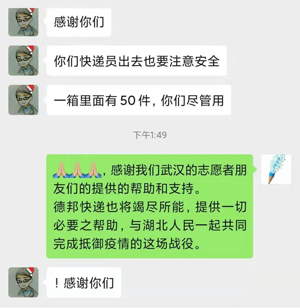 閆東方表示,盡管知道危險,但是這是我們作為武漢德邦人的一份責任。災難面前,每一個人都義不容辭!