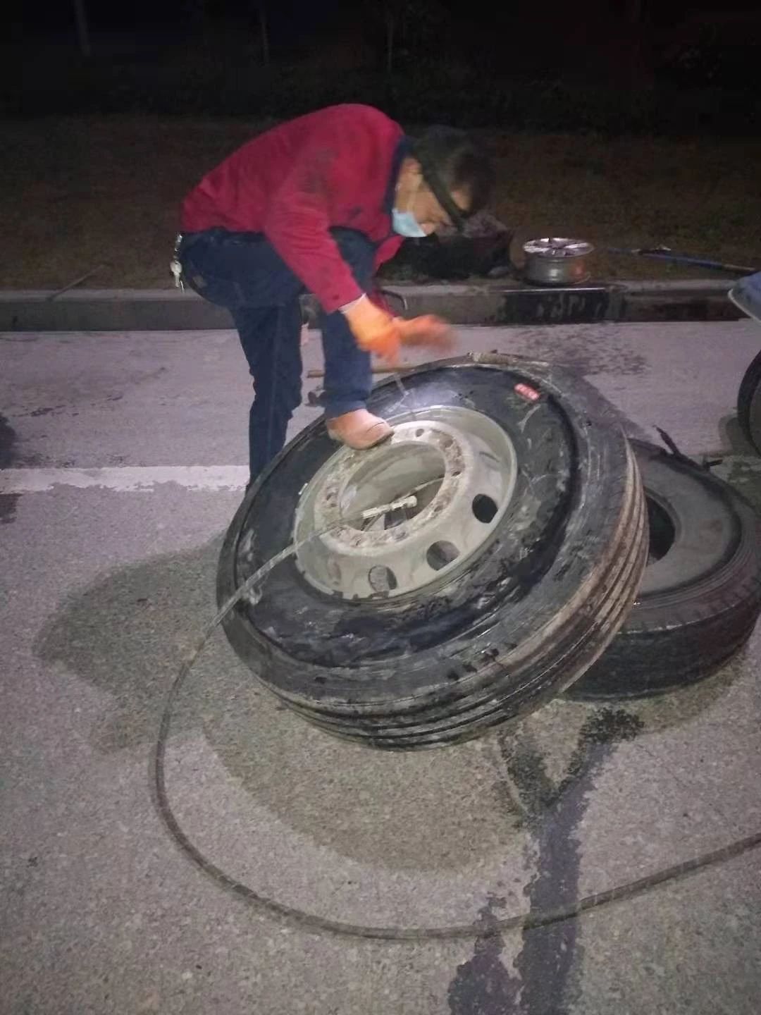 經(jīng)過(guò)1小時(shí)時(shí)間的施工為該車(chē)更換了輪胎。凌晨3:30分,羅師傅的物資運(yùn)輸車(chē)輛順利啟動(dòng)繼續(xù)上路。