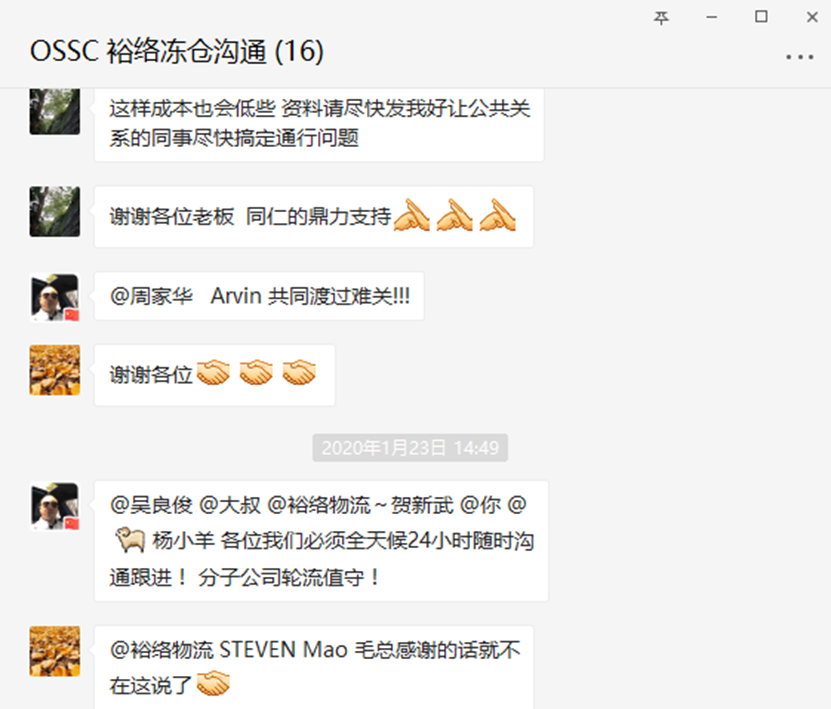 疫情就是命令!裕絡物流第一時間成立保障小組,立即組織車輛資源:農歷臘月二十九的下午,外請社會車輛資源幾乎沒有,幾經努力仍然沒有找到車輛。面對這一突發情況,上海裕絡物流緊急聯系己經下班、準備回家過年的司機員工返崗。