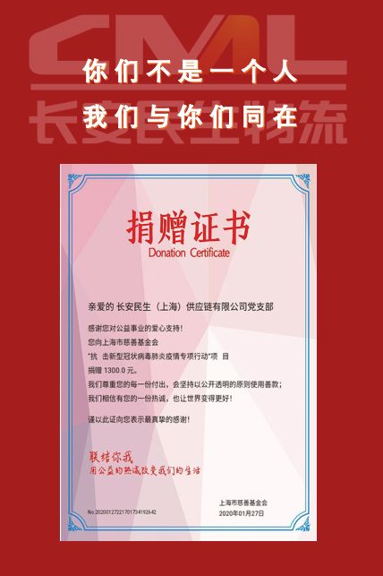 目前,長安民生物流已在兵器裝備集團統(tǒng)一組織下,為打贏疫情防控阻擊戰(zhàn)積極捐款上十萬元,同時組織和鼓勵全體員工開展愛心互助捐贈活動。公司員工也自發(fā)主動參與,為武漢、廣州的同事們捐贈醫(yī)用口罩,主動為抗疫斗爭作貢獻。