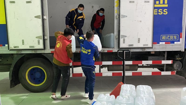 這樣的事情還有很多。石家莊一名客戶聯(lián)系我司客服義捐消毒液。客服得知后,直接聯(lián)系石家莊晉州市小樵鎮(zhèn)營業(yè)部經(jīng)理田楊。田楊緊急聯(lián)系承接貨車,將12.5噸消毒液安全送達(dá)疫區(qū)。