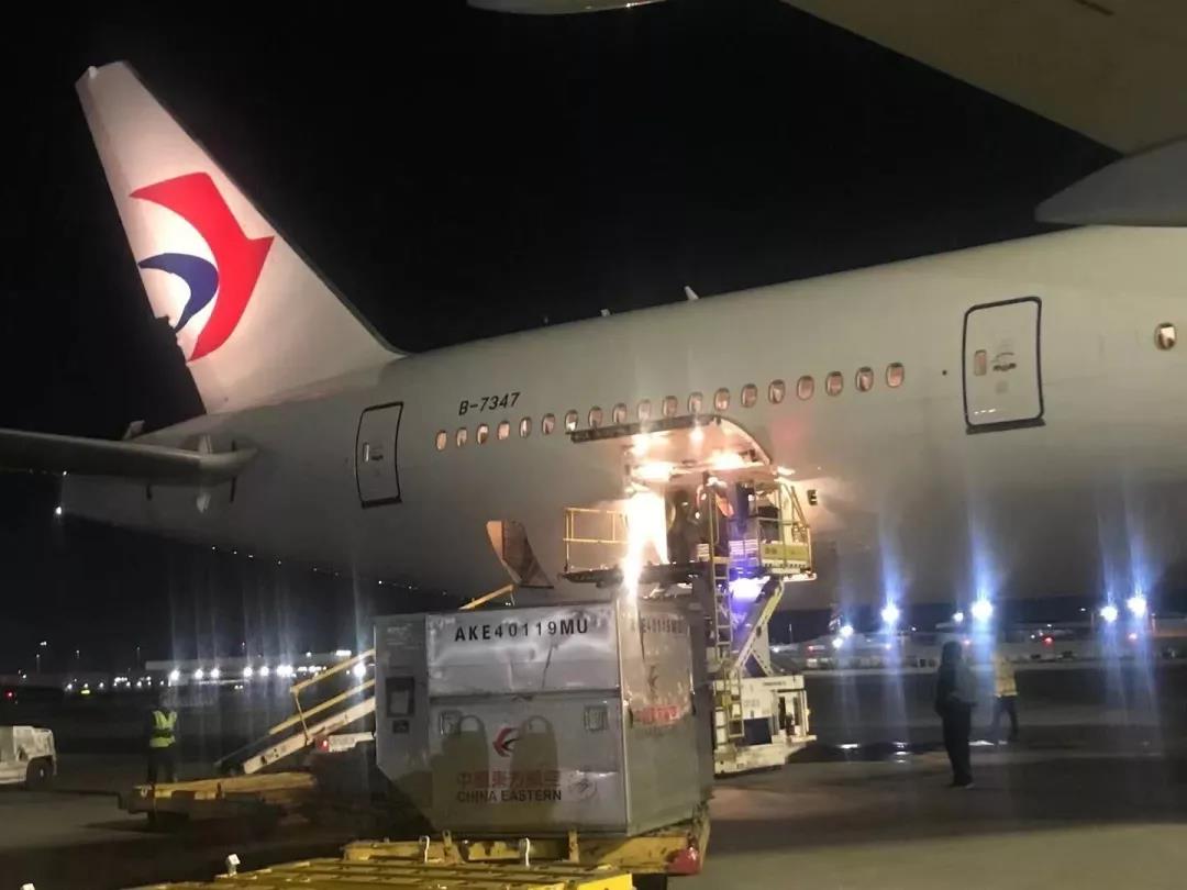 經菜鳥綠色通道,海外華人華僑捐贈的一批救援防護物資從紐約登機