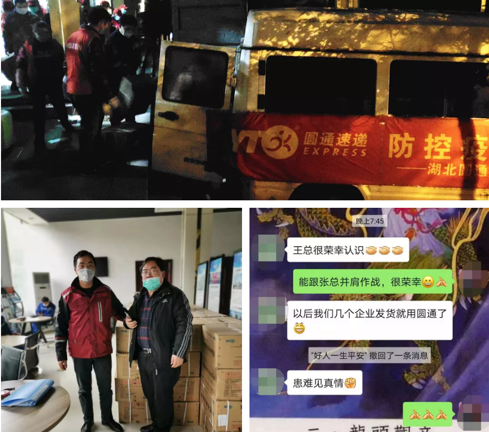 1月26日,有關(guān)機(jī)構(gòu)愿意從襄陽捐贈(zèng)3萬只口罩給武漢亞心總醫(yī)院,物資堆積在倉庫門口卻遲遲聯(lián)系不到物流公司來運(yùn)輸。彭娟聯(lián)系上圓通后,襄陽分公司不到半小時(shí)就上門取貨。