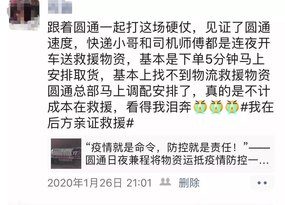 圓通這條綠色通道,接通了許多愛心觸達(dá)戰(zhàn)"疫"一線的路,更是讓越來越多人意識(shí)到“快遞鐵軍”的責(zé)任擔(dān)當(dāng)。