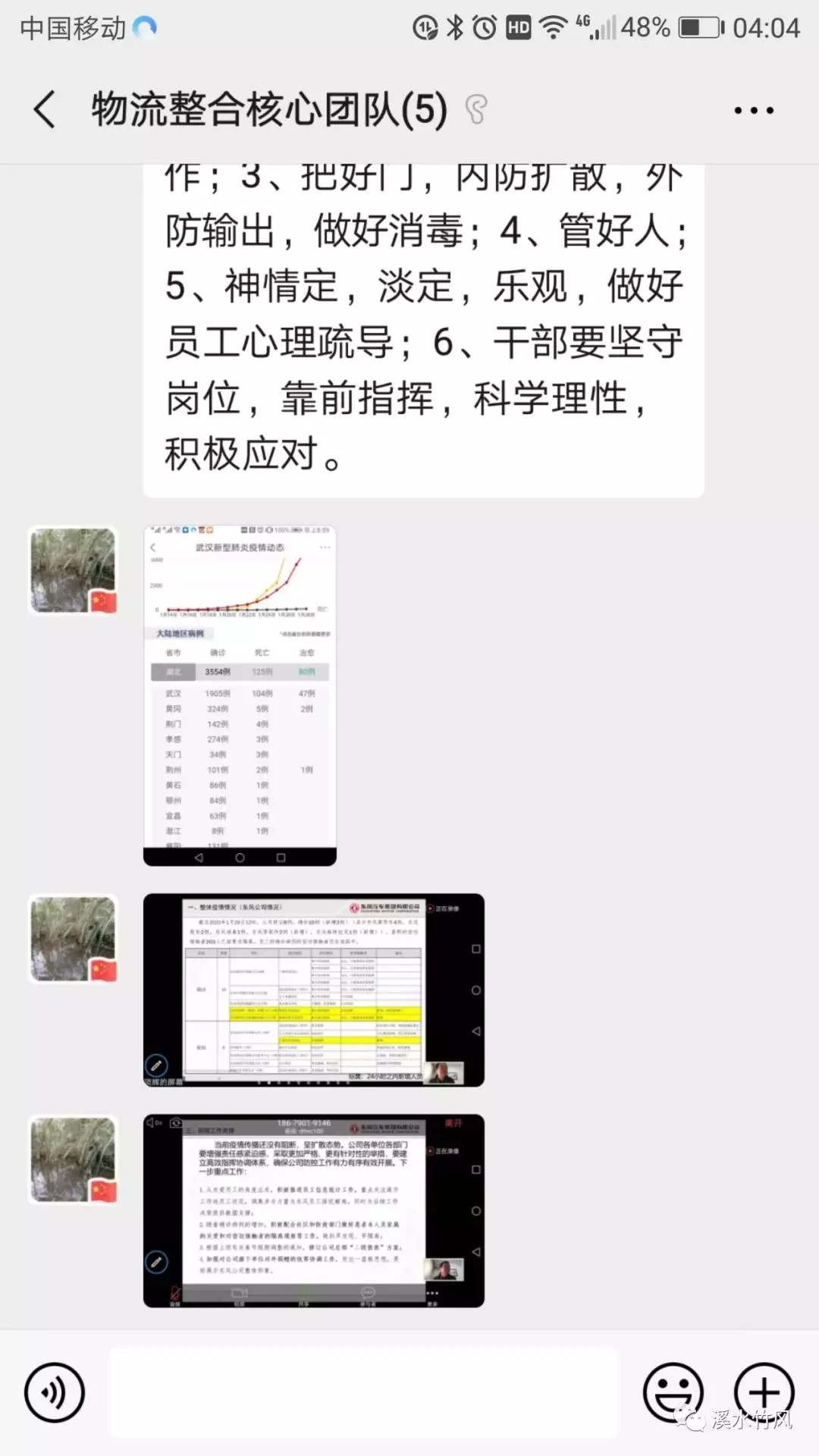 疫情就是命令,防控就是責任。風神物流假期期間高度重視防疫工作,每天通過“微信語音會議”方式,及時共同相關信息。方彥兵書記主持會議。會議要求防疫工作遵循十六字方針:指揮有力,臨危不亂,沉著應戰,措施落地。各項工作要以班組為基本單位,進行網格化管理,各級組織狀態要從“休假狀態”調整到“戰時狀態”。