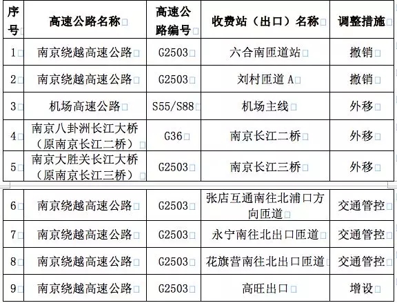 關于南京市域部分高速公路疫情防控查控點調整通告