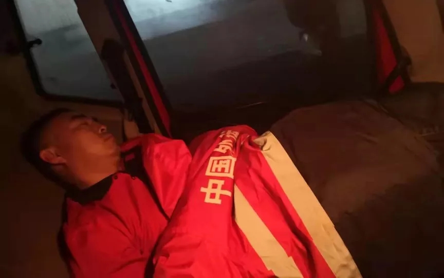 在等待指令的時間里,車就是他們的家。服務區領導在了解情況后,特意向林隊和夏隊開放了一個房間供他們休息,并告知他們廚房的開飯時間,兩個人吃到了兩天來的第一口熱飯。