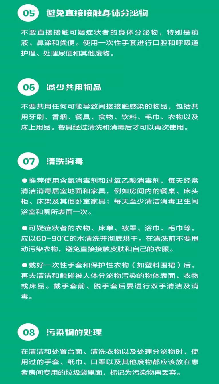 8)主動做好個人及家人的健康監(jiān)測,如自覺發(fā)熱要及時測量體溫。如家里還有小孩的,要早晚摸頭,如感覺發(fā)熱,要為其量體溫。