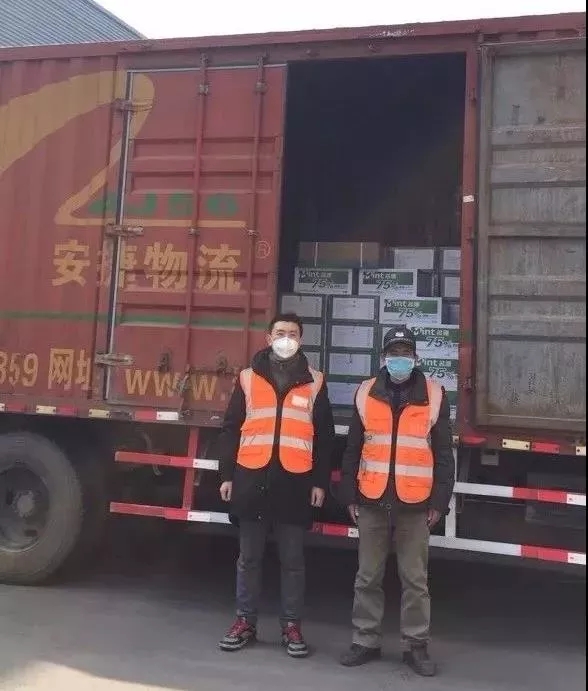 1月29日晚湖北安捷物流總部緊急調動廣州、福州、蚌埠、寧德、上海、長沙等分公司大量的人員和車輛,就近連夜加班加點分揀、裝車、運送口罩、防護服、酒精、消毒液、手套、生活保障品等醫療防護用品馳援武漢市金銀潭醫院及其他各大醫院、超市。