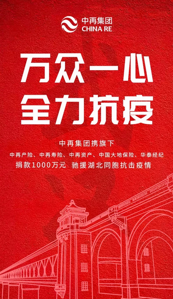 1月28日,中再集團系統向湖北省慈善總會捐款人民幣1000萬元,積極助力湖北抗擊新型冠狀病毒感染肺炎疫情、共渡難關。
