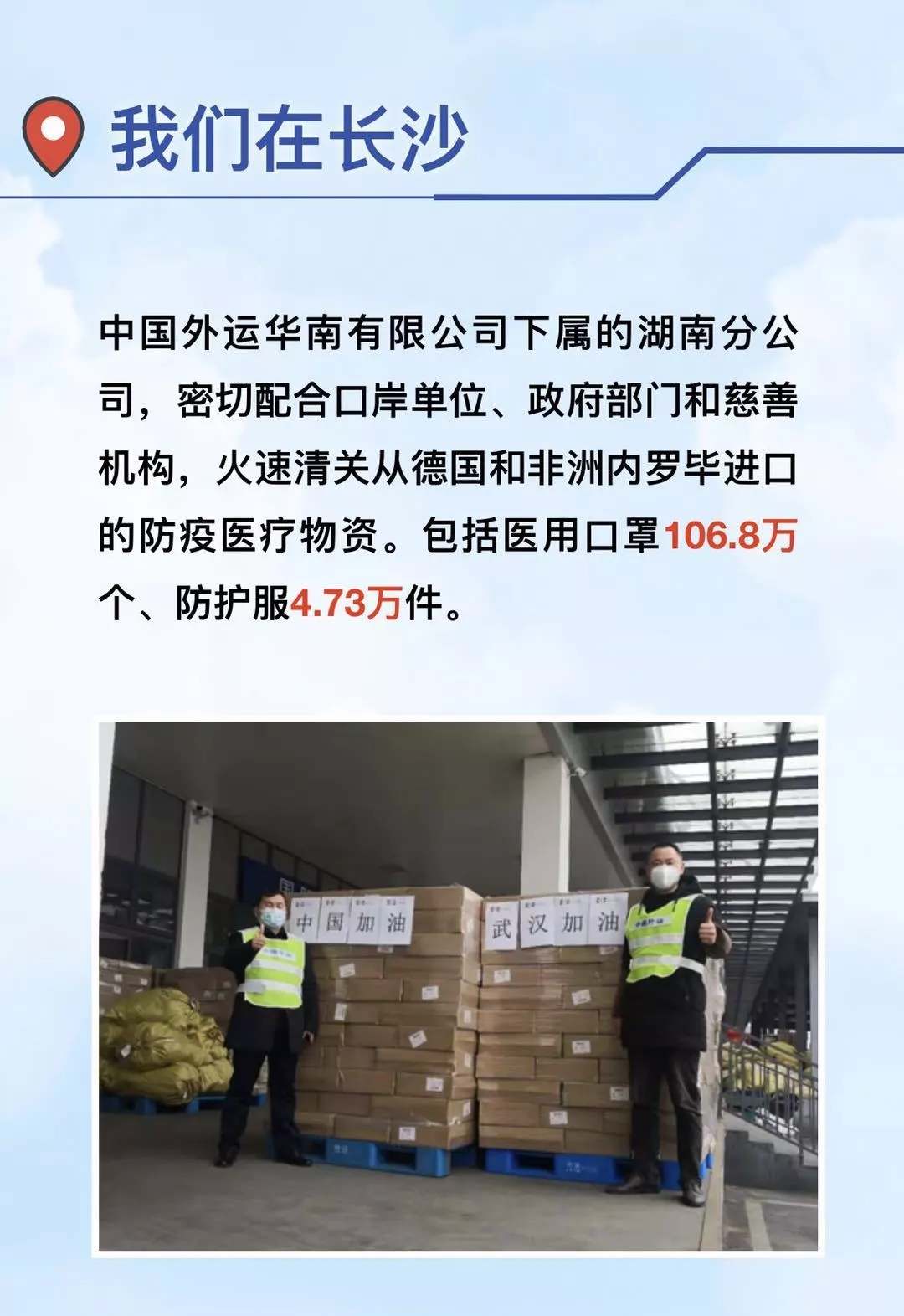 截至2月8日,招商局旗下物流平臺中國外運(yùn)已累計(jì)完成各類應(yīng)急物資運(yùn)輸400單,貨量3955噸、10827立方米,境外捐贈物資服務(wù)窗口提供各類報(bào)關(guān)清關(guān)、航空貨運(yùn)方案、各國最新政策等義務(wù)咨詢800多次。