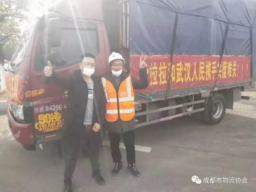2月2 日,成都市物流協會會員單位四川中郵物流義務承運防疫物資到武漢