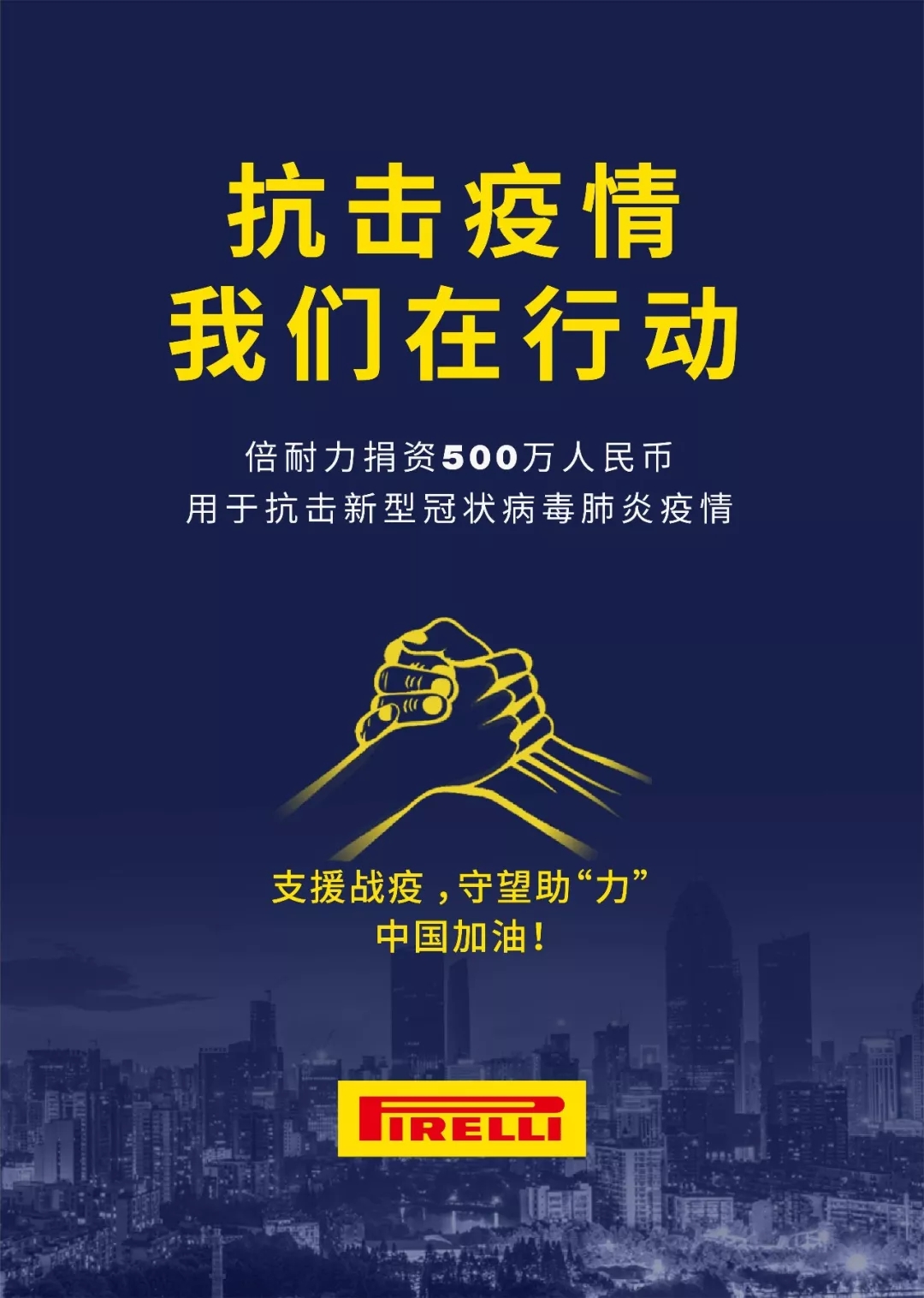 新型冠狀病毒肺炎疫情爆發,牽動著全世界的目光和全中國人民的心弦,此時此刻,疫情就是命令,防控重在行動!昨日,倍耐力捐資500萬人民幣用于支援抗擊新型冠狀病毒肺炎疫情。