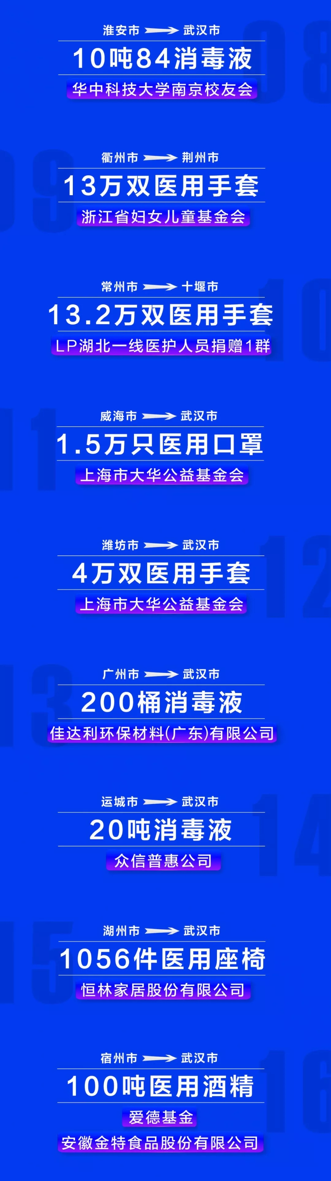與此同時,眾多企業還攜手當地的慈善基金會馳援武漢。蘇寧物流相繼完成了中國光華科技基金會、白求恩公益基金會、凱爾翎公益基金會、愛德基金會、浙江省婦女兒童基金會、上海大會公益基金會、欣鑫慈善、江蘇省江陰市慈善總會等組織機構援助物資的免費承運。