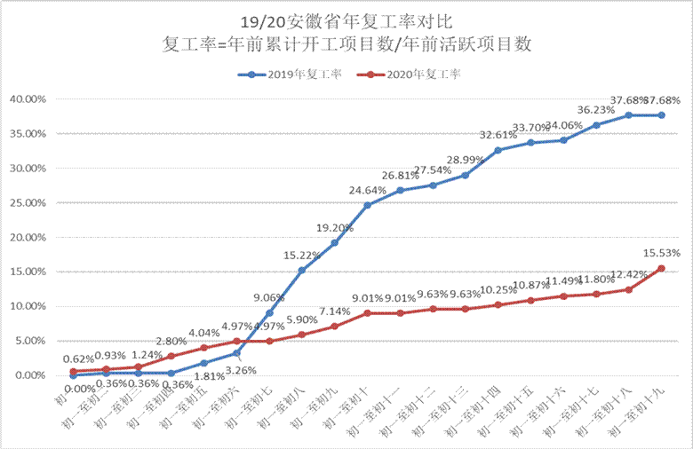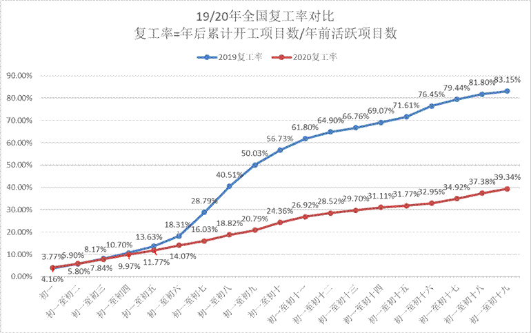 4.復工率=正月初一之后已復工的項目累計數/春節前三個月的活躍項目總數
