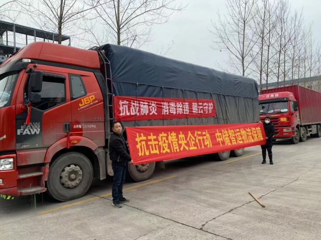 2月1日,中儲智運平臺承運由江蘇揚州運往武漢、宜昌、襄陽等地的消毒水,從湖北仙桃運往成都市的防護口罩,以及由湖南株洲運往武漢的醫療物資。