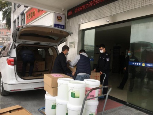 益邦控股始終關(guān)注著新冠肺炎疫情發(fā)展,第一時(shí)間聯(lián)系多方貨源采購(gòu)防疫物資,到貨后即刻送往緊缺防護(hù)資源的一線崗位,緊急支援防疫工作。益邦控股代表一行來(lái)到廣州市白云區(qū)黃石派出所,捐贈(zèng)了包括84消毒液、75%消毒酒精、免洗洗手液等價(jià)值35000元的防疫物資,同時(shí)對(duì)駐守一線的民警們表示了由衷感謝。派出所的民警們一直以來(lái)對(duì)轄區(qū)的疫情防護(hù)工作盡職盡責(zé),嚴(yán)防嚴(yán)控,保護(hù)轄區(qū)人民的健康與平安。作為企業(yè),在這防疫的關(guān)鍵時(shí)刻需要做力所能及之事,讓民警們面對(duì)疫情能夠多一層防護(hù),彼此擰成一股繩,同舟共濟(jì)共渡難關(guān)。