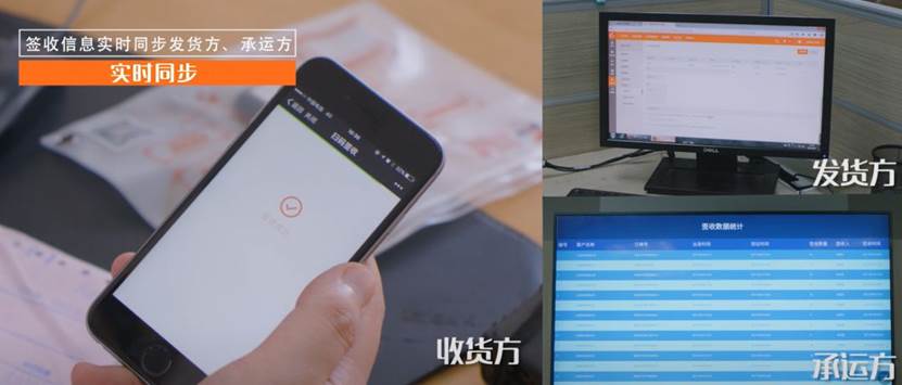 貨物簽收過程中收貨人通過手機掃碼簽收,查看訂單核對貨物,沒有問題直接點擊簽收即可。有問題可直接填寫備注、拍攝異常照片,確認簽收后簽收信息實時同步給發貨方、承運方,安全高效便捷。