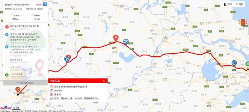 而在此期間,一旦物資運(yùn)輸途中出現(xiàn)異常停留、運(yùn)輸晚點(diǎn)等情況,物流企業(yè)及相關(guān)人員均可以第一時間介入管理,真正做到防疫物資運(yùn)輸?shù)牧飨蚯逦⑷掏该鳎U衔镔Y在途萬無一失。