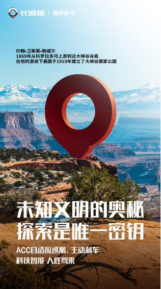 從科羅拉多河上游抵達大峽谷谷底,領略約翰?韋斯萊?鮑威爾所驚嘆的美景,探尋美國大峽谷公園。ACC自適應巡航、主動剎車,科技智能,讓足跡踏尋未知凈土,讓越野解開自然奧秘。