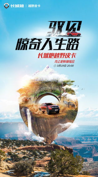 3月19日20:00,長城炮越野皮卡線上搶鮮會,山川湖海,日月星辰,陪你駕馭自由,放懷天地。