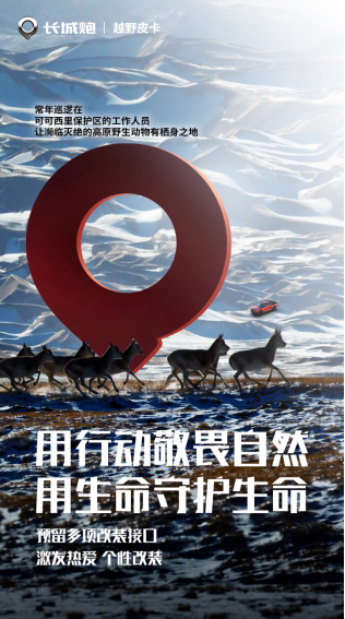 越野讓我們懂得關愛,敬畏自然,敬畏生命,愛護所有來之不易的一切。長城炮越野皮卡預留多項改裝接口,用合適的方式,守護藍天下的每一寸凈土,保護每一個精靈。