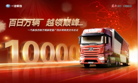 4月15日,以“百日萬輛 越領巔峰”為主題的一汽解放西部萬輛解密暨廣西扶南物流交車儀式于成都、南寧兩地,線上、線下同步盛大開啟。
