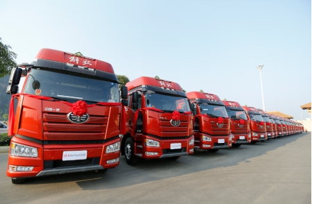 作為此次西部萬輛交車用戶——廣西扶南物流有限公司,是南方有色集團的控股公司,廣西民營前十強企業,已與解放多次合作,2019年已采購近百輛解放J6P牽引車,而本次采購的50輛危化品牽引車僅是今年首批。