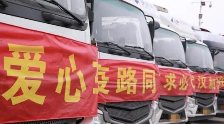 ▲馳援武漢的物資運輸車隊,圖片來源于現(xiàn)代日報