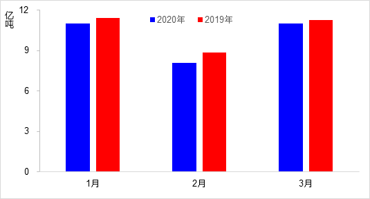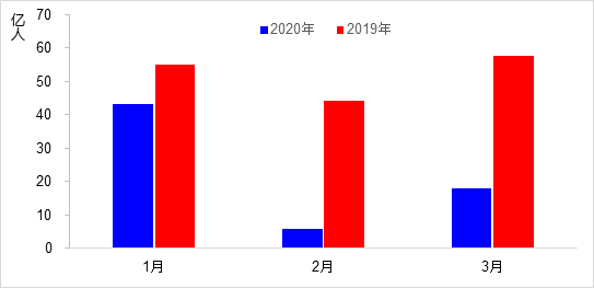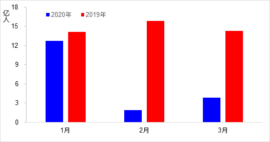 一季度,完成營業性客運量18.5億人,同比下降58.4%,其中3月下降73.0%,降幅較2月收窄15.2個百分點。分方式看,公路客運量下降59.4%、水路客運量下降61.4%。