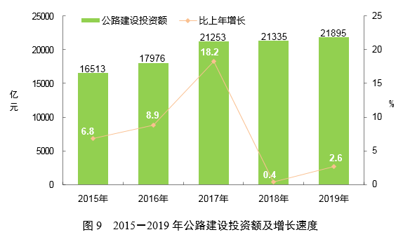 全年完成公路建設(shè)投資21895億元,比上年增長2.6%。其中,高速公路建設(shè)完成投資11504億元,增長15.4%;普通國省道建設(shè)完成投資4924億元,下降10.3%;農(nóng)村公路建設(shè)完成投資4663億元,下降6.5%。