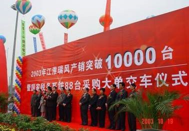 2002年8月18日,國家海關總署批量采購了180臺瑞風,這是瑞風成長史上的一個標志性事件,被譽為“中國政府采購第一單”。