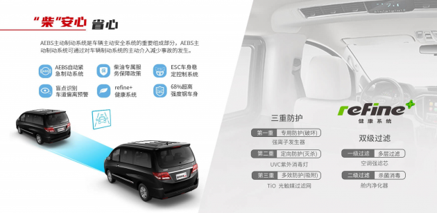 針對出行行業來說,全新一代瑞風M4柴油版還搭載了AEBS自動緊急制動、refine+健康系統等可以解決出行行業目前存在的痛點,例如AEBS自動緊急制動可以保證行車安全,減少或避免事故發生。而refine+ 健康系統則是具有“雙級過濾,三重防護”的功能,18分鐘內就可實現艙內空氣煥新,“N95級”過濾防護、殺毒滅菌等功能一應俱全,保障車內健康安全的呼吸環境。